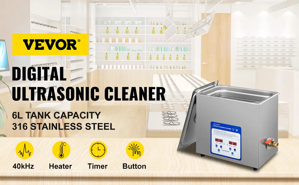 This commercial-grade ultrasonic cleaner is built with sturdy 316 & 304 stainless steel, making it an efficient machine for daily or professional cleaning work. Our ultrasound jewelry cleaner machine will emit 40kHz ultrasonic waves to wash dirt on your valuables' surface and crevice deeply. With heating and timing functions, your items can be cleaned thoroughly in minutes. Lab ultrasonic cleaners are ideal for cleaning jewelry, eyeglasses, watches, metal tools, etc.