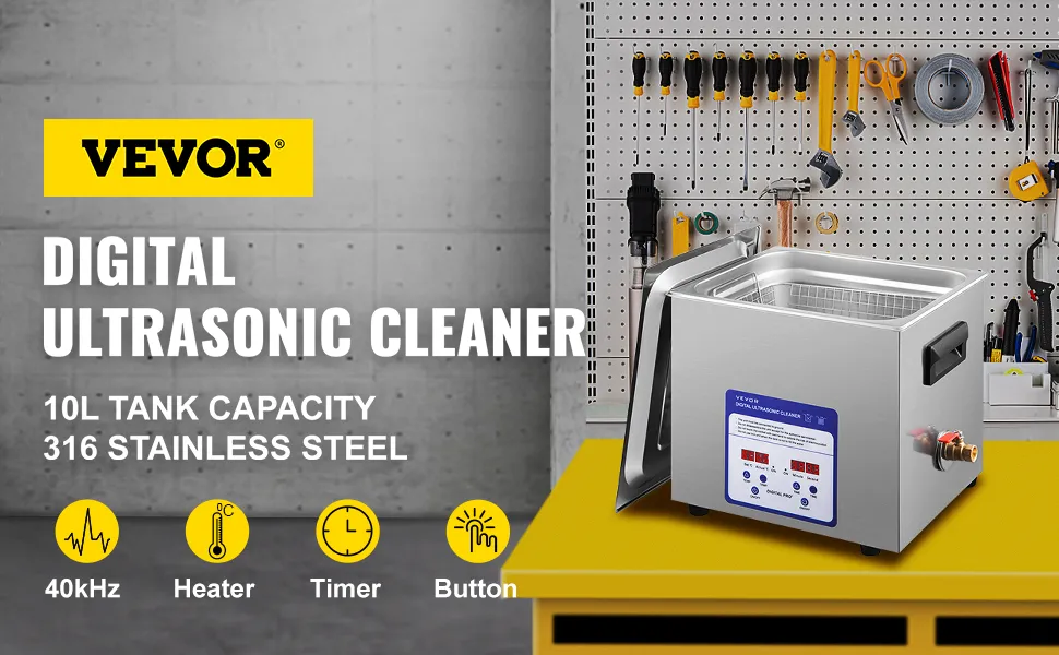 This commercial-grade ultrasonic cleaner is built with sturdy 316 & 304 stainless steel, making it an efficient machine for daily or professional cleaning work. Our ultrasound jewelry cleaner machine will emit 40kHz ultrasonic waves to wash dirt on your valuables' surface and crevice deeply. With heating and timing functions, your items can be cleaned thoroughly in minutes. Lab ultrasonic cleaners are ideal for cleaning jewelry, eyeglasses, watches, metal tools, etc.