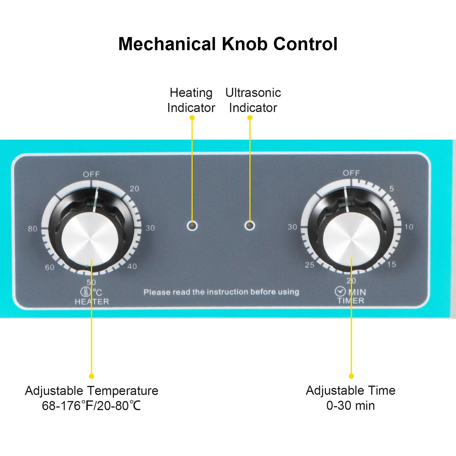 With two knobs, the time is adjustable from 0 to 30 min, and the temperature can be set within 68-176℉/20-80℃ (below 45℃ are recommended to avoid damage to records).