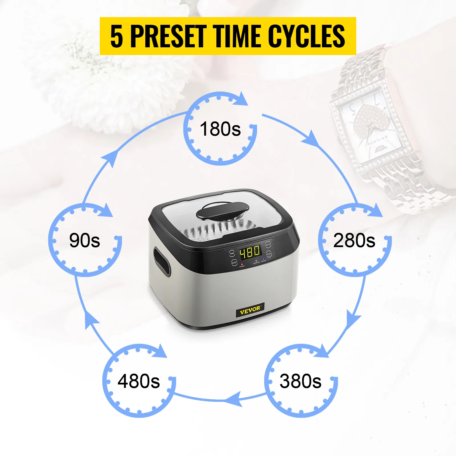 This ultrasonic cleaner small is adjustable from 0 to 8 min with five cycles (90, 180, 280, 380, and 480 seconds), allowing the ultrasonic eyeglass cleaner to meet your various cleaning needs.