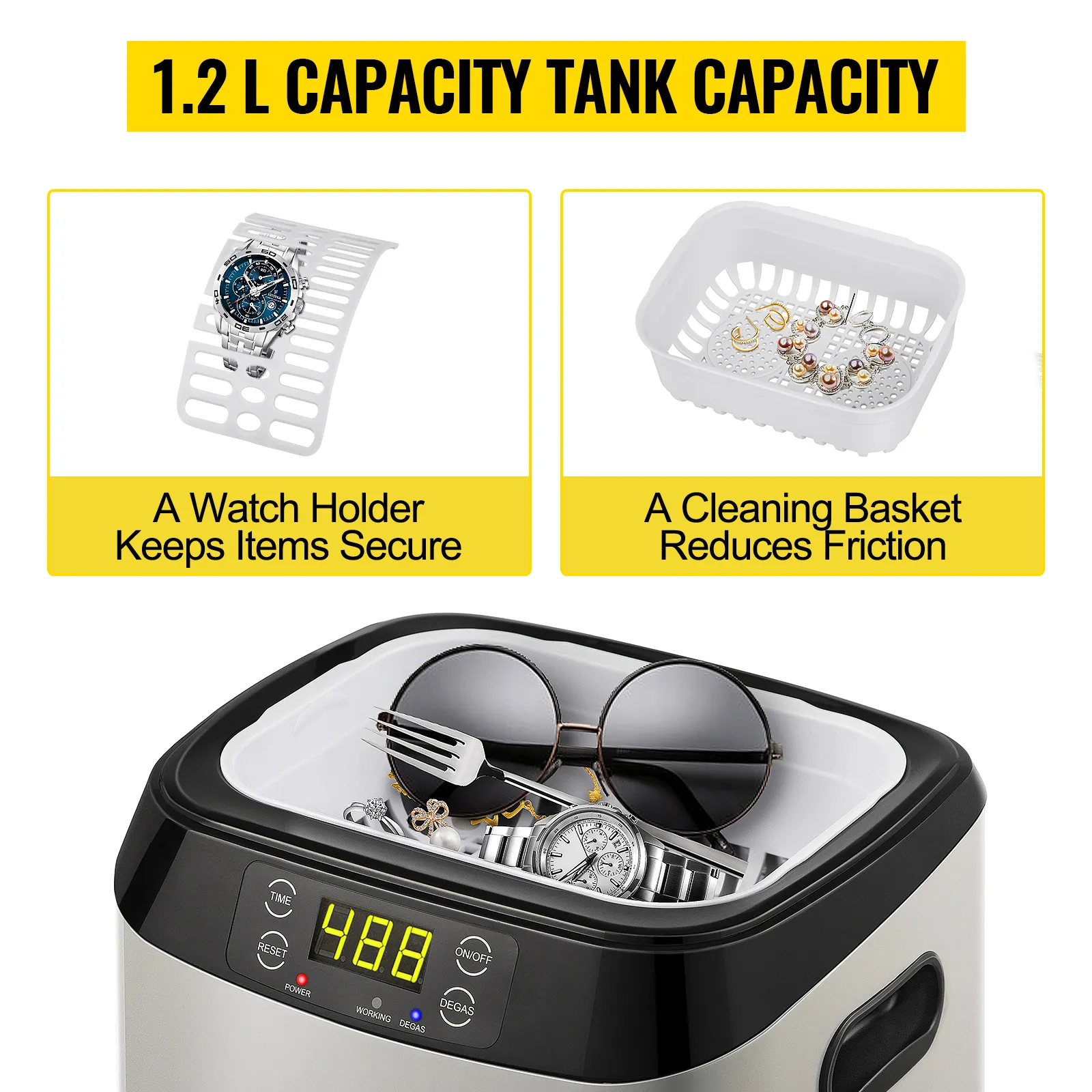 The jewerly cleaner features a 1.2L tank, coming with a cleaning basket to reduce friction during washing and a watch stand for non-submersion watches.