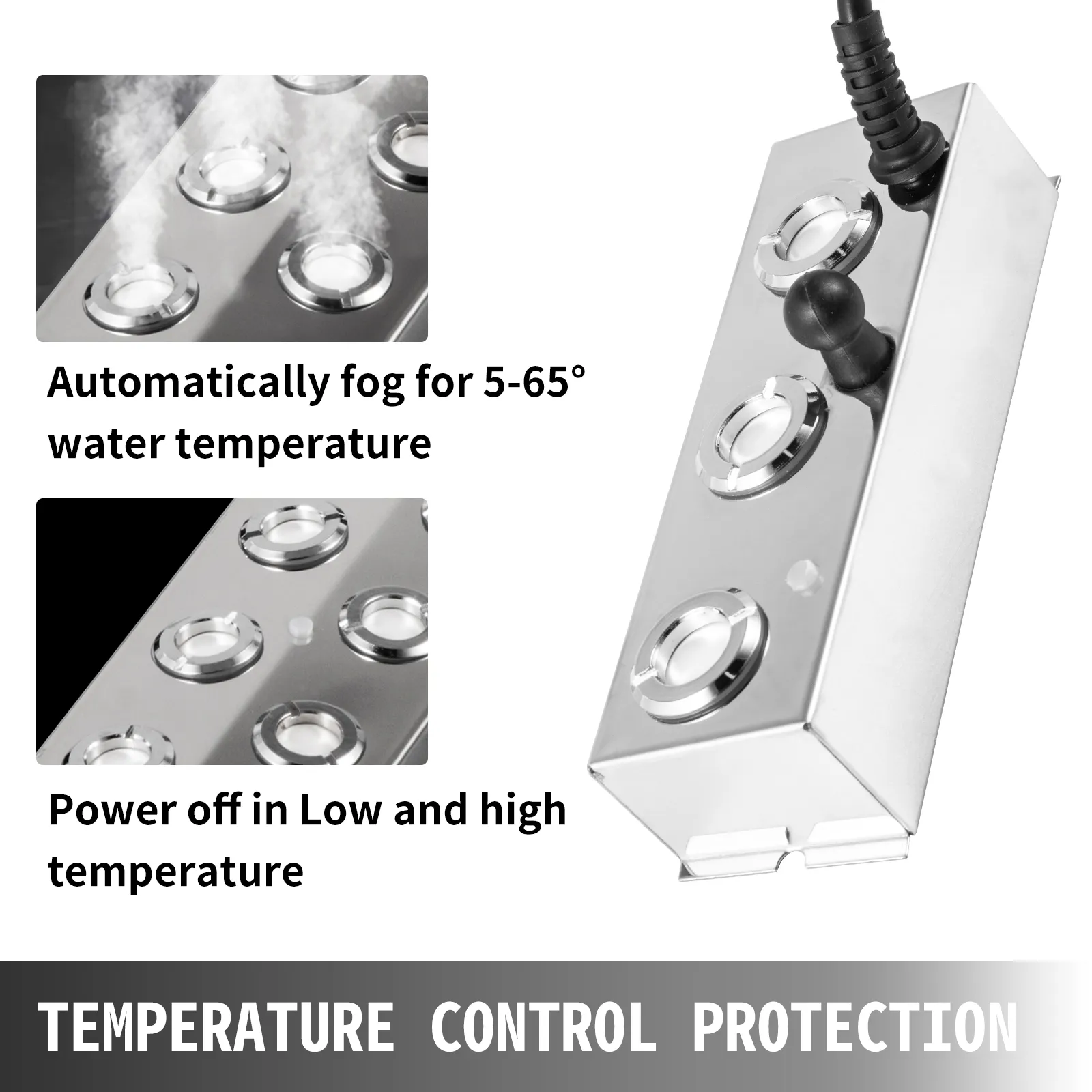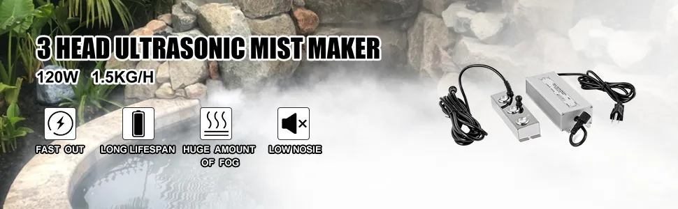 This 3-head ultrasonic mister fogger utilizes electrical oscillation at ultrasonic frequencies. The pond mister fogger is constructed of stainless steel that is IP67 waterproof and corrosion-resistant for a long lifespan.