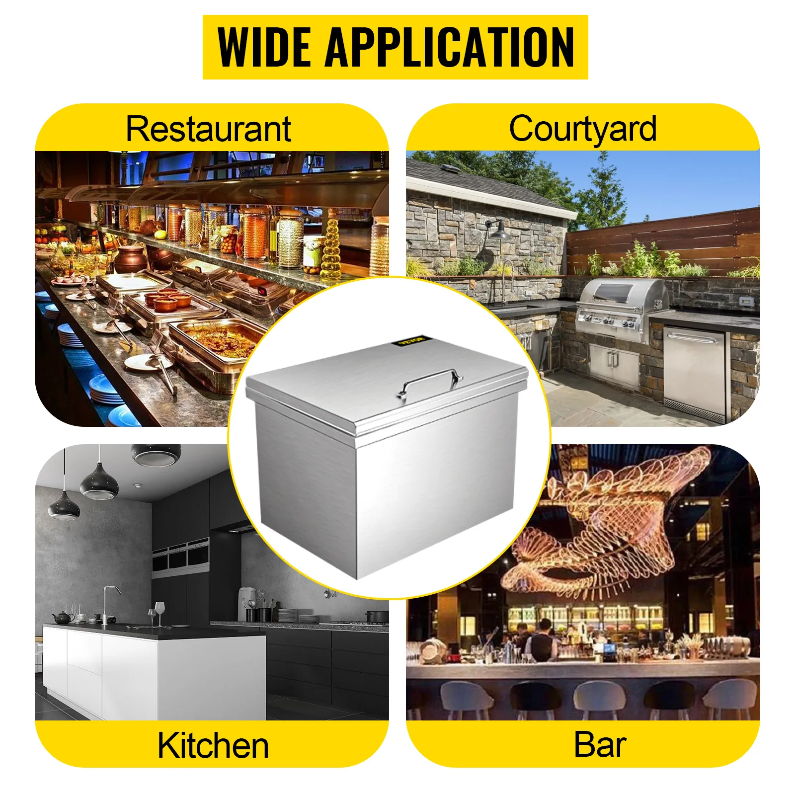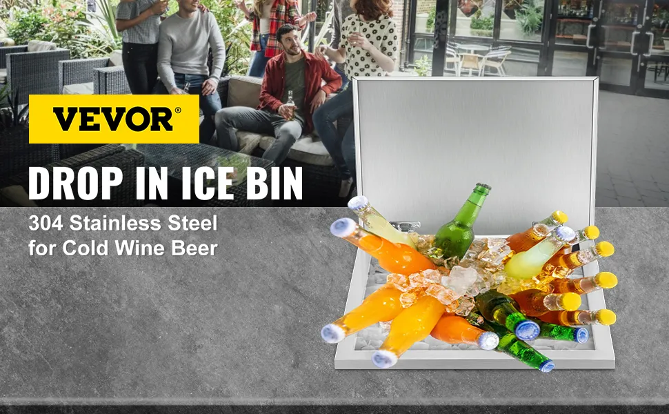 Keep your ice frozen and easily accessible with the drop-in ice chest! Premium drop-in ice bin with 304 stainless steel material, which increases durability. A high-quality cover is included to provide proper sealing and keep the ice from contamination. A drain at the bottom of the bin helps to drain water. Perfect for outdoor kitchen, party, resort, bar, etc.