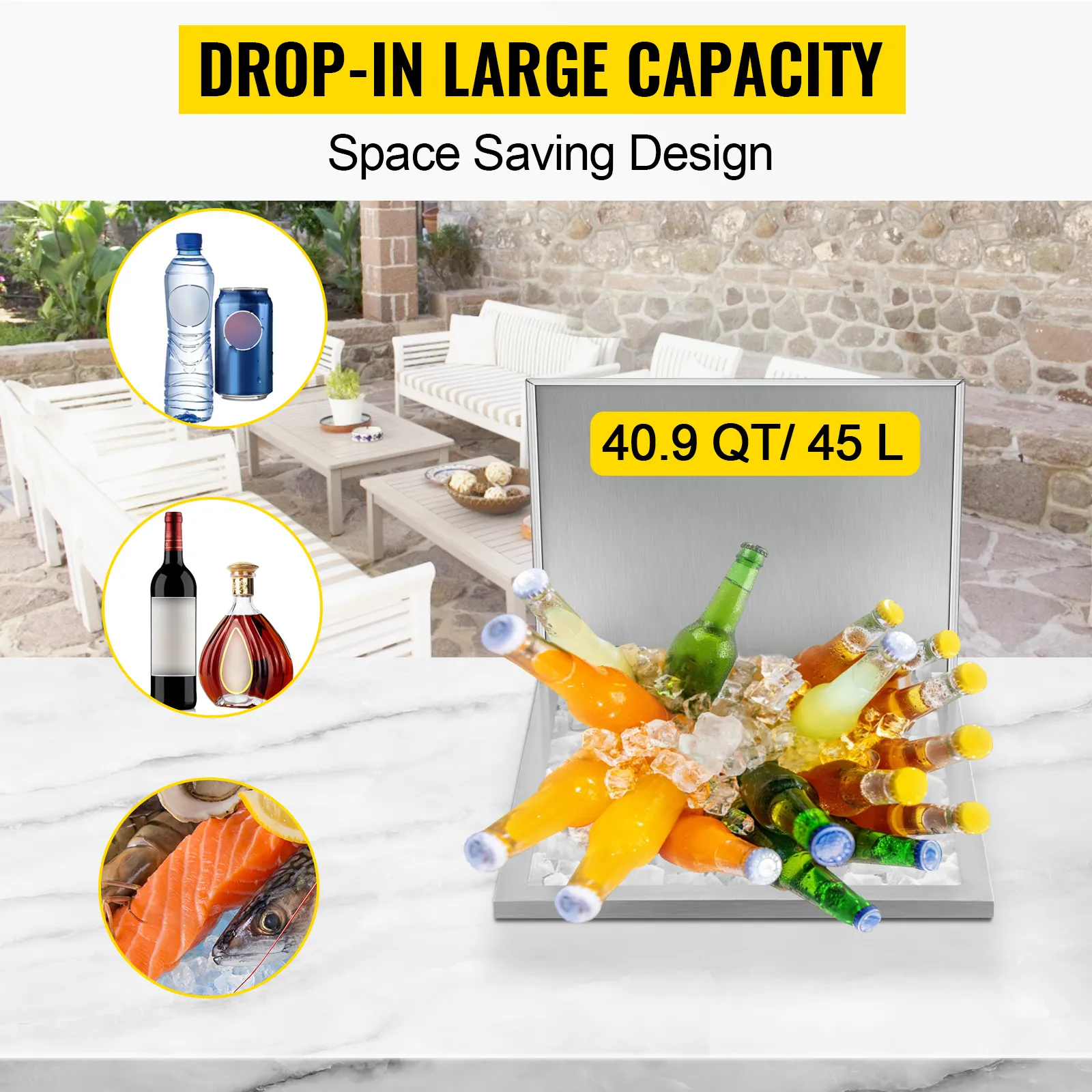 This drop-in ice chest is equipped with 0.05-inch thick, premium 304 stainless steel, which increases durability. Featuring insulation function, this drop-in ice chest will keep your drinks cool for a longer duration.