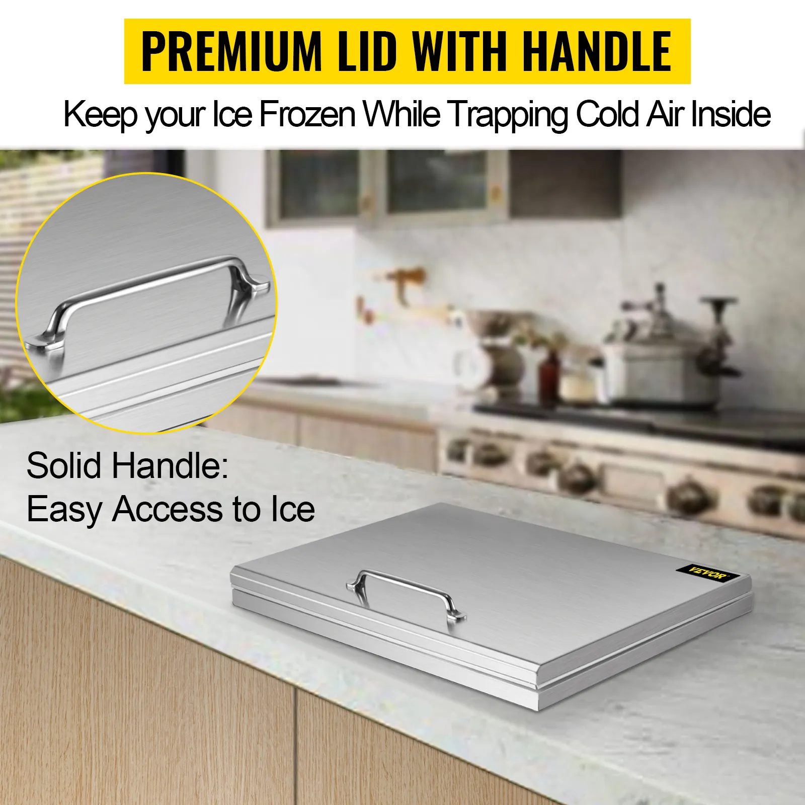 With a sleek handle, it is easy to open and close the lid. Meanwhile, the lid is made of double-walled stainless steel and filled with insulating rubber for a excellent effect on cooling and slowing down ice melting.