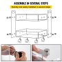 VEVOR acrylic cart assembly instructions with labeled parts and "simple assembly" text above.