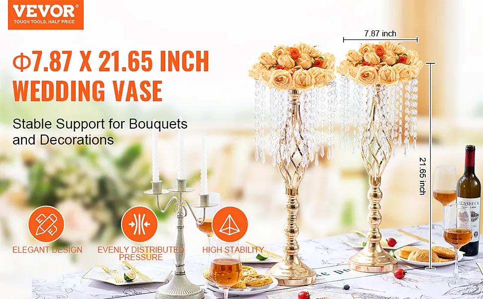 Easy Assembly: This wedding vase is designed for straightforward assembly, requiring no tools. Simply follow the provided steps, and you'll have it ready for use in no time.