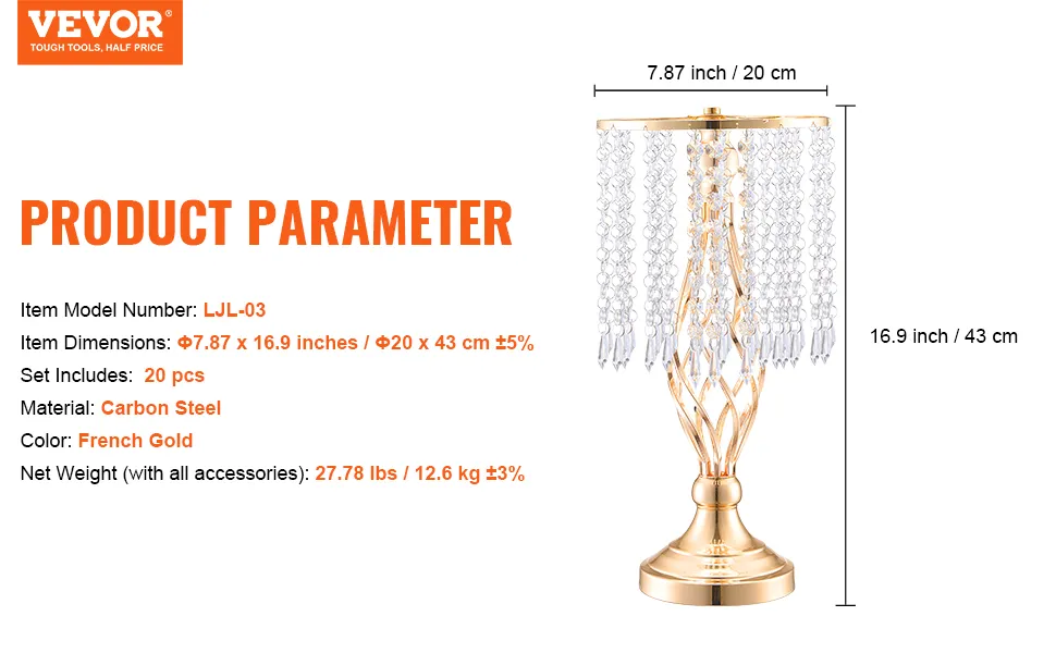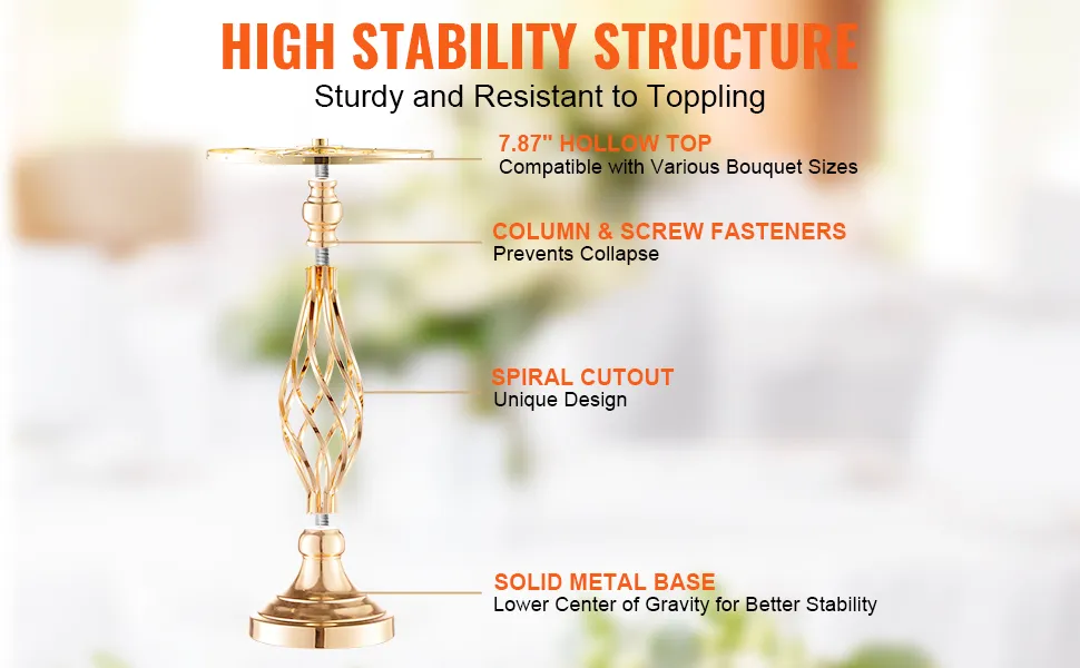 High-Quality Material: Made from premium carbon steel, this wedding floral stand is resistant to deformation and built to last. The surface is treated with a French gold electroplating process, providing a bright finish with vivid colors that are both attractive and easy to clean. It employs screw-fastened connections to prevent pin deformation, ensuring greater stability after assembly.