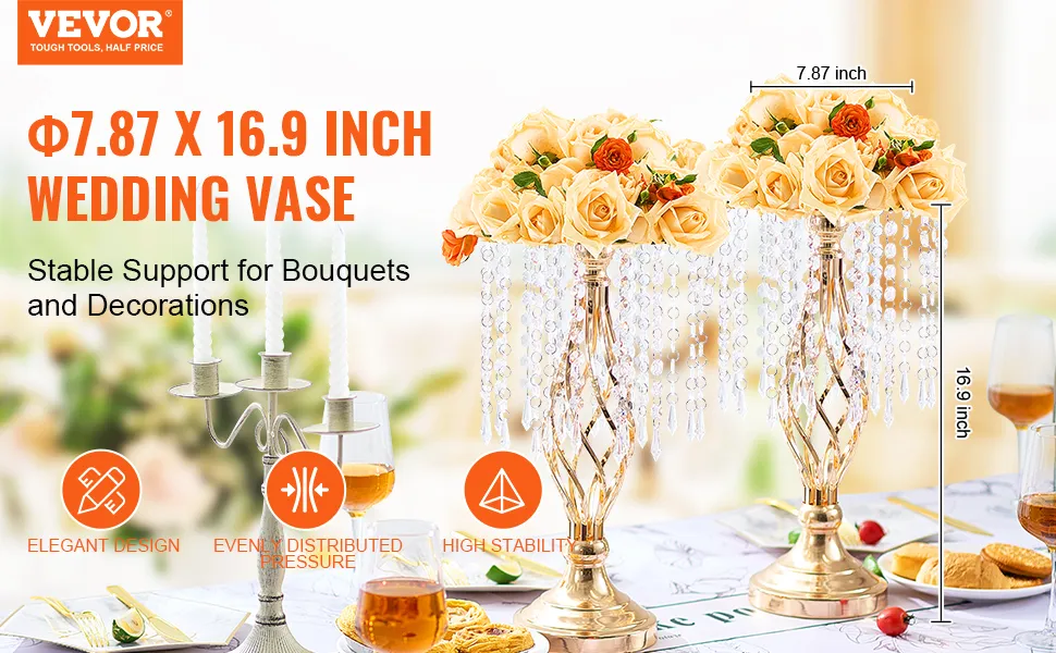 Elegant Design: This wedding vase features a hollow spiral design paired with transparent crystal, offering a simple yet elegant appearance. It ensures even weight distribution for enhanced stability, allowing you to place multiple decorations without worrying about wobbling or falling.