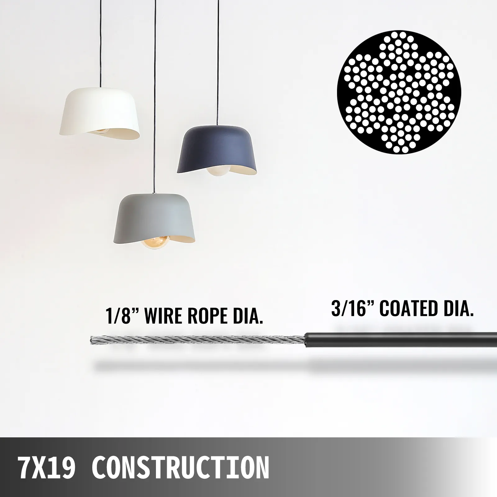 【EXCELLENT WORKING CAPACITY】- Wire Rope Dia. is 1/8'', Coated Dia. is 3/16". 1443 lbs breaking strength allows for daily effortless activities. Please note that breaking strength is not considered a safe working load limit.