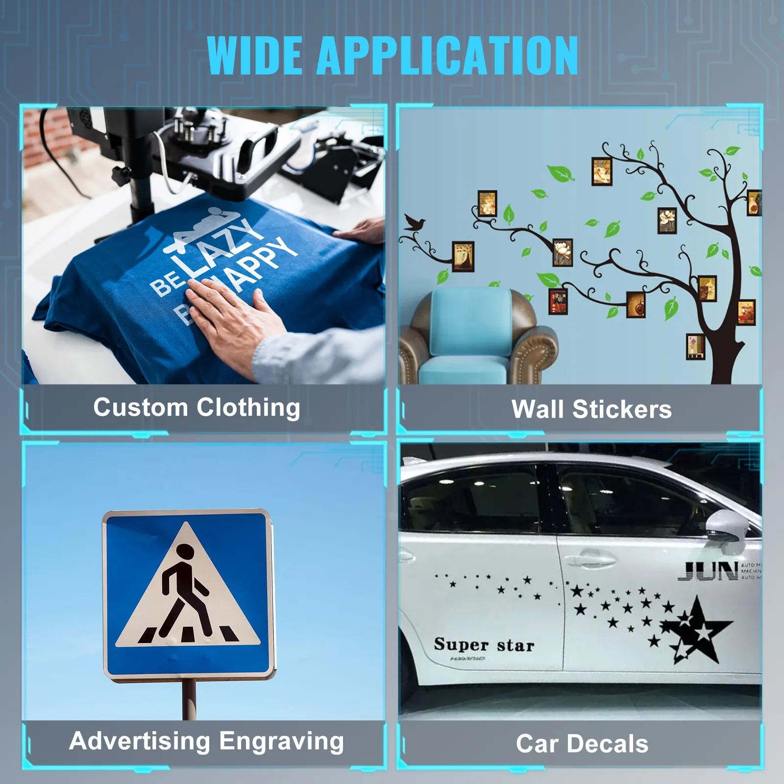 Our vinyl cutter plotter is capable of flawlessly cutting various materials, giving the cutter superior control as you create fancy graphics. As a result, a vinyl printer is an ideal tool for many businesses-making labels, signs, handicrafts, and heat transfers for sale, advertising, decorations, and more!