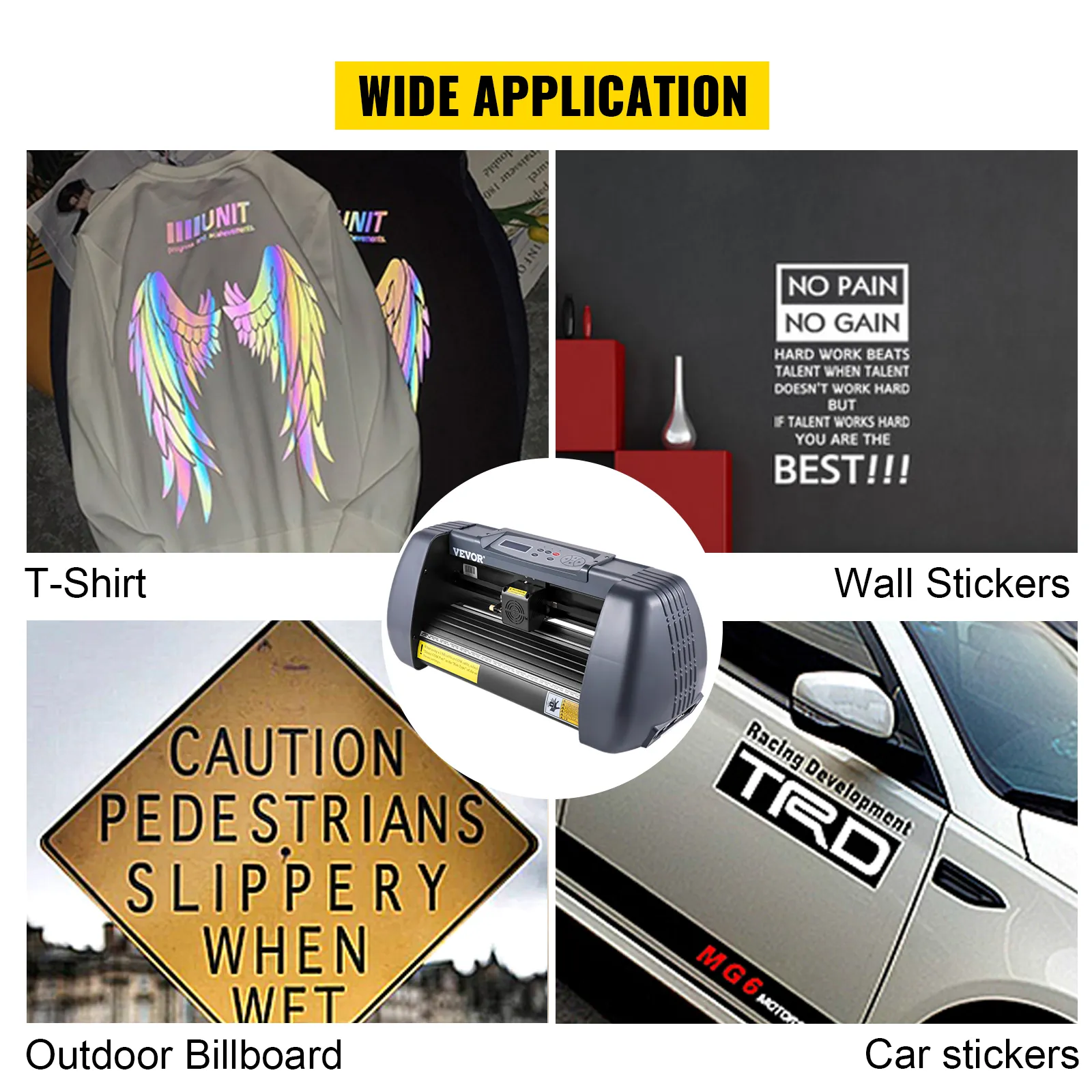 You can make the most out of the vinyl cutter to enjoy creating different crafts. Ideal for cutting sticker and decal vinyl, scrapbook papers, card stock, as well as various T-shirt heat transfer media like PU vinyl, flock, Magi Cut colored paper, etc.