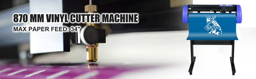 【CUTTING CAPACITY】- 34-inch vinyl cutter with maximum paper feed of 870mm(34.3"), maximum cutting width of 780mm(30.7"), cutting precision of +/-0.01mm(0.0004"), and paper feed precision of 3m(118").