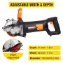 You can adjust the cutting width by changing the blades' quantity. It can install 5 pcs saw blades (5.2 inch/133 mm) max to get a max slot width of 1.7 in/42 mm. Max slot depth: 1.6 in/41 mm.