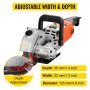 You can adjust the cutting depth and width by changing the blades' quantity. It comes with 5 pcs saw blades. Blade Diameter: 125 mm. Max depth: 35 mm. Max width: 33 mm.