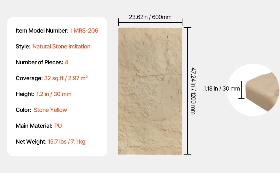 VEVOR 3D Wall Panels, 4 Pack 120 x 60 cm PU Natural Stone Imitation Wall Art Tiles, 2.97 m² Coverage Accent Wall Panel, Interior Home Decor for Ceiling, Bedroom, Living & Gaming Room, Stone Yellow