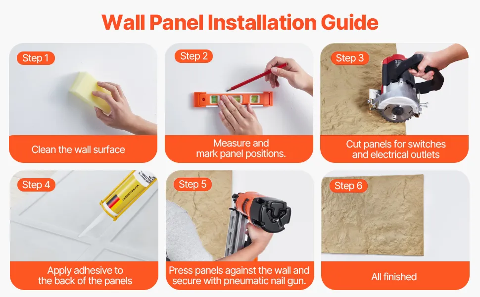 Achieve a flawless finish by ensuring your walls are smooth, dry, clean, and secure. For older walls, apply a water-based sealant primer to stabilize any loose surfaces. Fill gaps after panel installation with filler for a seamless look.