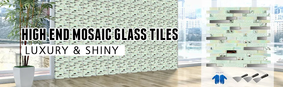 The tile is composed of stainless steel, glass, and special texture. It is eco-friendly made and resistant to heat & moisture. Wipe-clean surface, anti-mold for backsplash.