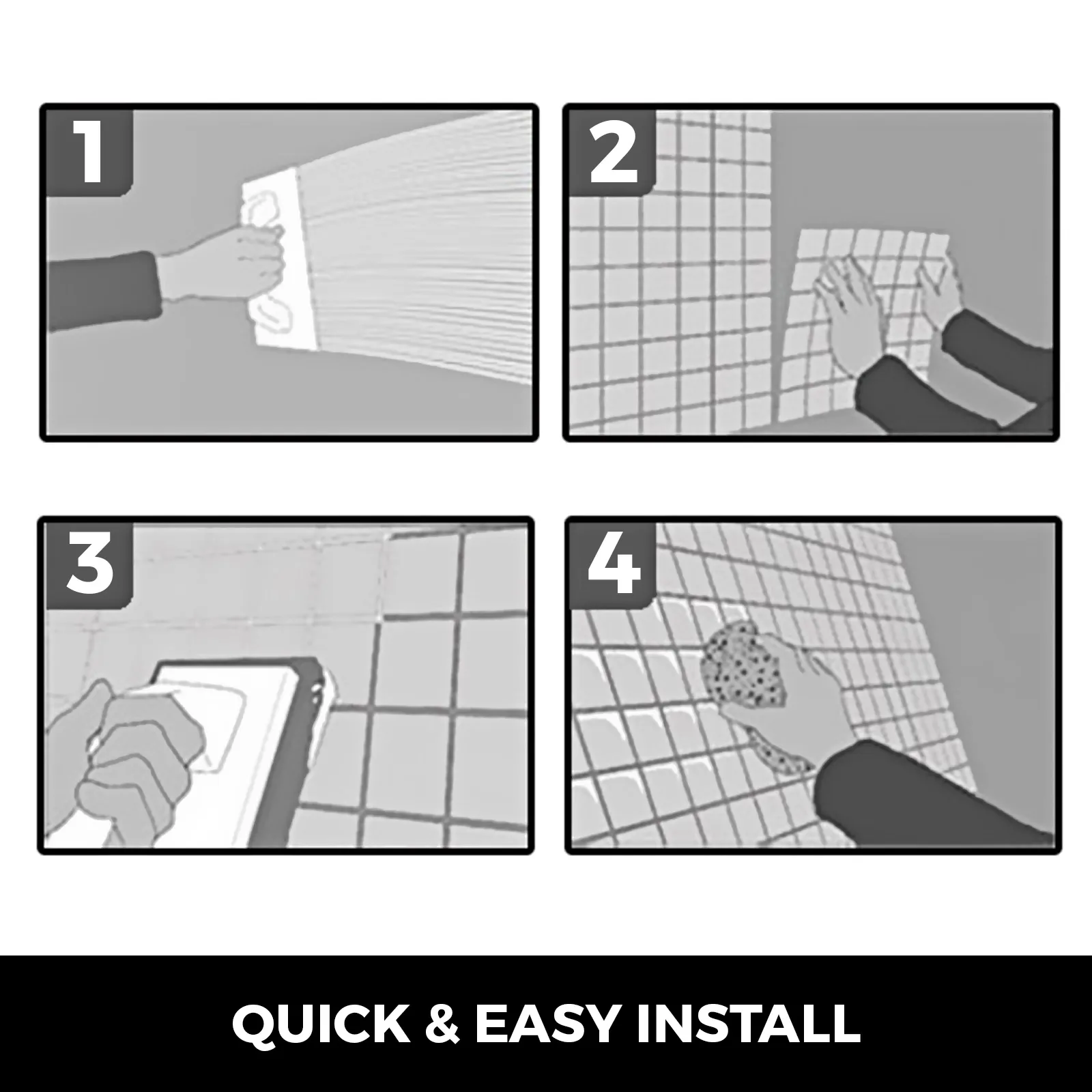 Mesh back, the tiles are adhesive to the mesh tightly. Non-sand grout for installation. Mesh design for easy cut, trim & DIY. Also send you a pair of gloves, 3 install accessories.