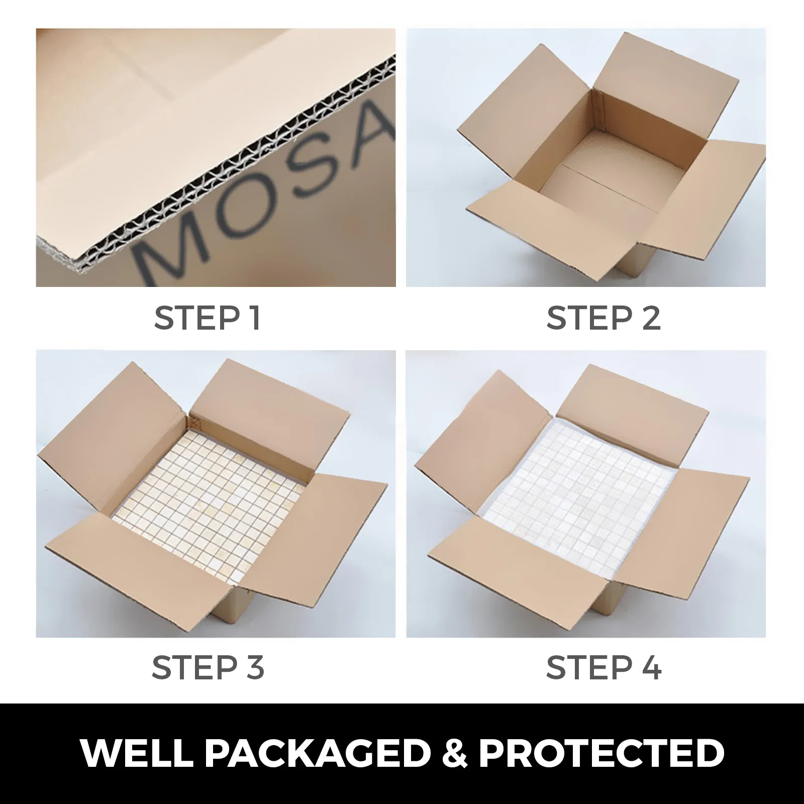 We offer thick & sturdy package for these tiles on transportation. No need to worry about breaks or any damage. It is well protected with paper box & several films.