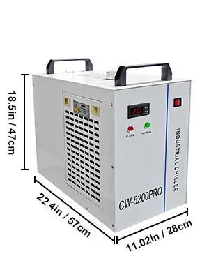 CW-5200 Pro Series is a professional cooling machine with a portable design. It is easy to install and operate, designed for cooling the one CO2 glass laser tube under 130W/150W of the laser engraving and cutting machine.
