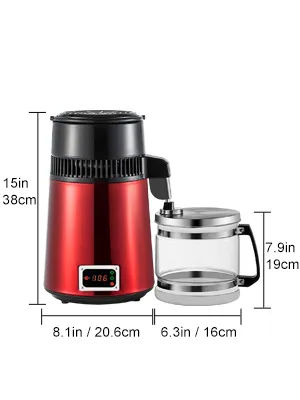 The easy-to-carry distiller includes a durable collection bottle, three carbon packages, and fruit acid cleaner, which is needed to purify the water and ensure the purest and safest distilled water for all your needs. And there is a non-slip foot pad at the bottom, not easy to fall.