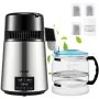 VEVOR 4L/1.1 Gal Brushed 304 Stainless Steel Water Distiller, Countertop Distilled Water Machine with Glass Container, Dual-Temperature Display and Smart Switch, Purifier Filter for Home Office