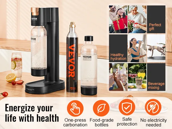 Cool and Healthy: Our sparkling water maker allows you to craft your own natural soda water, reducing bodily stress while offering a refreshing, healthy, and energizing drink. Enjoy creating a variety of colorful beverages anytime, anywhere, indulging in the joy of making soda water, juice, wine, cocktails, or beer. It also makes a great gift to share happiness with friends.