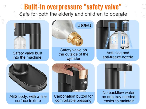 Our sparkling water and soda maker features an automatic pressure release. Releasing the button automatically vents gas, eliminating the need for manual depressurization and making it safer and more convenient, enabling even the elderly and children to operate it independently.