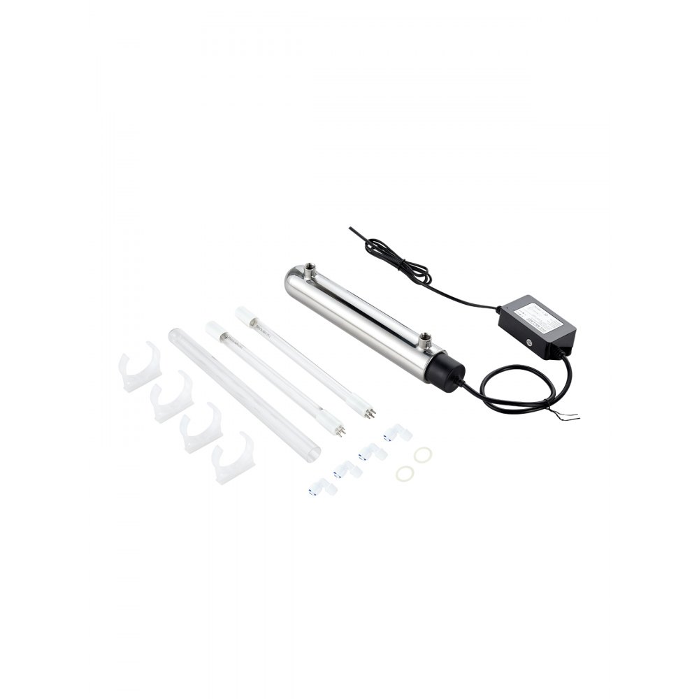 Complete Accessories: 1 x Stainless Steel Main Body Tube, 2 x Light Tubes (1 required, 1 extra included), 1 x Quartz Glass Sleeve, 1 x Power Ballast, 4 x Mounting Brackets (2 required, 2 extra included), 2 x Sealing Rings (1 required, 1 extra included), 4 x Quick Connectors, 1 x Tape. If any parts are missing or damaged, please contact us for free compensation.