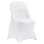 Premium Material: Color: White; Quantity per box: 50 PCS; Material: 95% Polyester Fiber & 5% Spandex. Durable fabric and quality stitching offer additional comfort and elasticity. Universal spandex folding chair covers are designed to protect your chairs from accidental spills, pet scratches, everyday stains, and tears, making them ideal for both indoor and outdoor events.