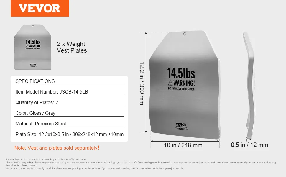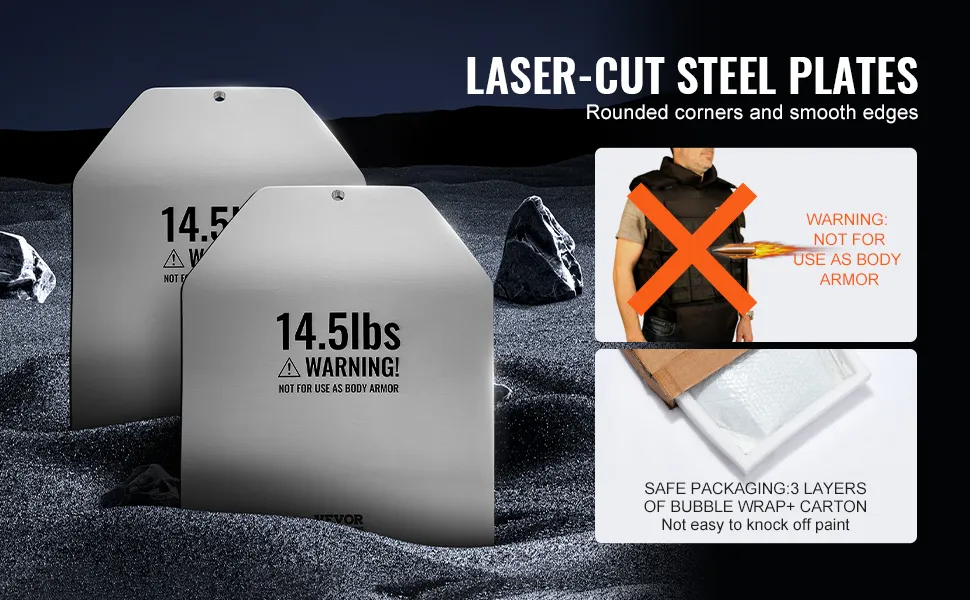 Heavy-Duty Steel: Crafted from durable steel with rounded corners and smooth edges, these weighted plates for vest are built to last. Each plate is carefully packaged with three layers of bubble wrap and a carton for added protection. WARNING: NOT FOR USE AS BODY ARMOR!