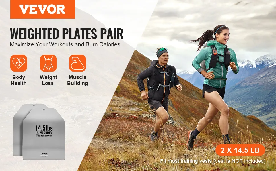 Two 14.5 LB Weight Plates: This set features two 14.5 lb weight vest plates designed to enhance your workouts. Please note: the vest is sold separately.