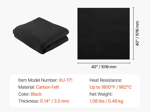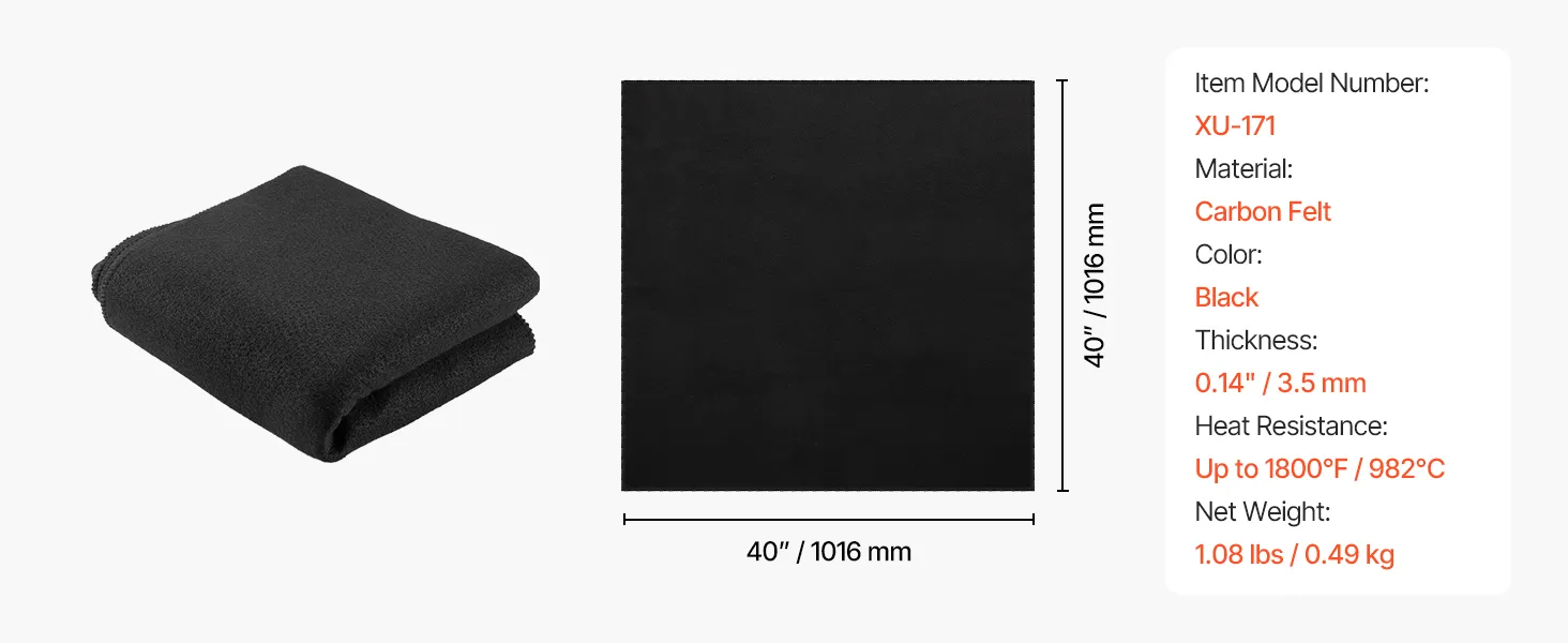 High Temperature Resistant: VEVOR 1016mm x 1016mm carbon felt welding blanket withstands high temperatures up to 1800°F (982℃), delivering excellent heat and flame resistance to protect against sparks, flames, molten metal and intense heat