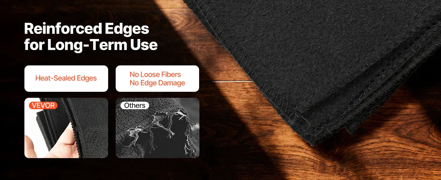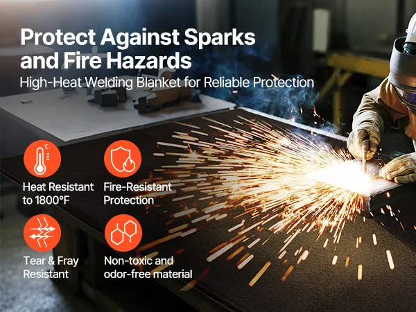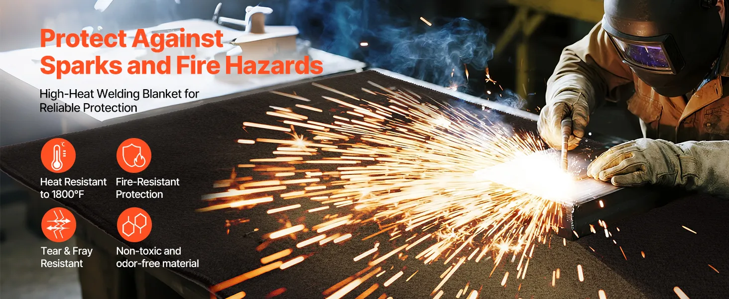 VEVOR 1016mm x 1016mm carbon felt welding blanket withstands temperatures up to 1800°F and offers lasting flame resistance, protecting against welding sparks and molten splatter. Stay safe from fire risks and enjoy a more secure, efficient working experience.
