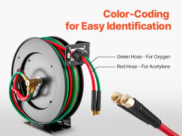 Sturdy Steel Construction: The retractable welding hose reel housing is made from premium steel, offering exceptional durability, impact resistance, and corrosion resistance. It is built to withstand challenging welding environments, providing reliable hose protection and extending its lifespan.