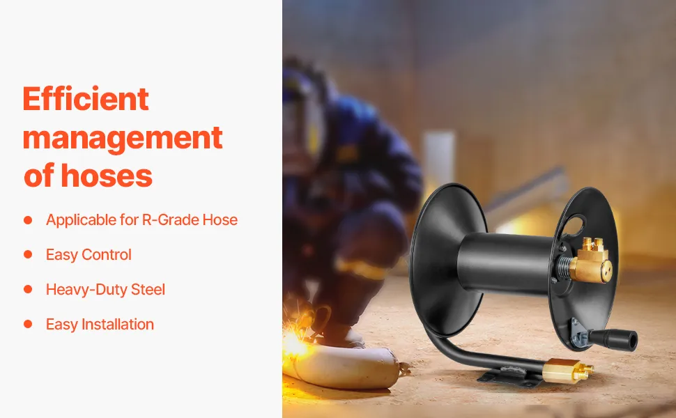 Easy to Install: The simple installation design enables this hose reel to be easily mounted in workshops, tool rooms, garages, and other workspaces, keeping your welding hose accessible and free from tangles or kinks.
