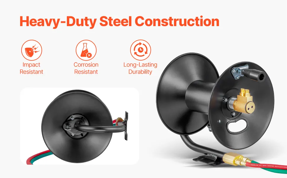 No More Tangled Hoses: This heavy duty welding hose reel keeps your hoses neatly organized, preventing tangles and reducing wear. It improves work efficiency while maintaining a clean and orderly workshop or workspace.