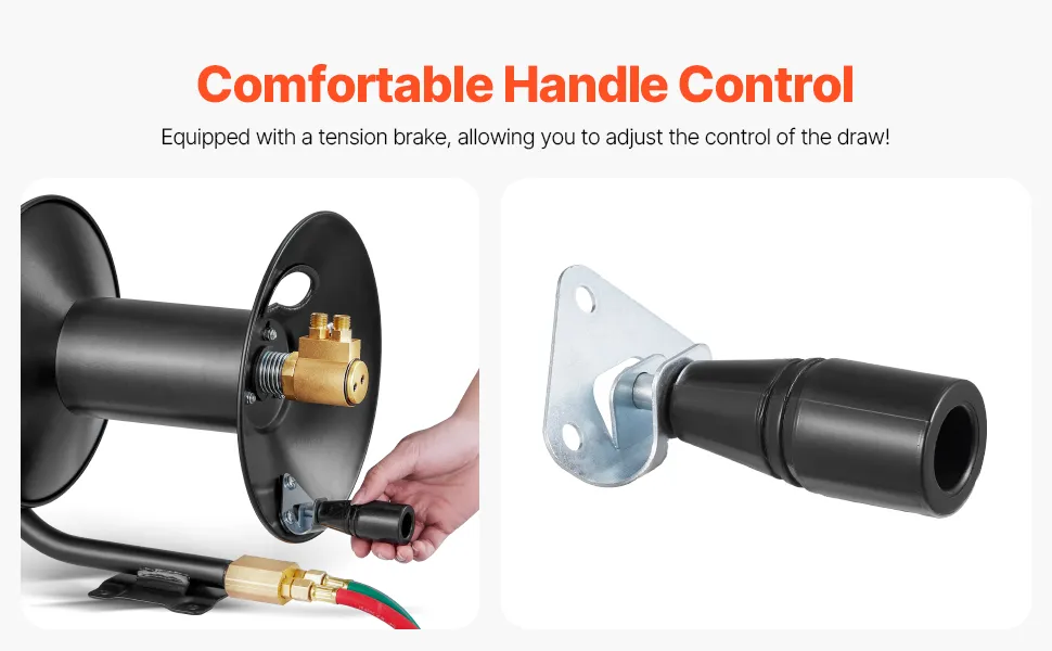 Easy Control: Complete with a tension break, you can adjust the control of your draw! This helps prevent the hose reel from free-spinning during operation or transport. And the manual hand crank makes retraction effortless and efficient.