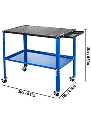 The tabletop size is 18" x 36", the spacious welding cart with ample room offers a comfortable working or DIY experience.