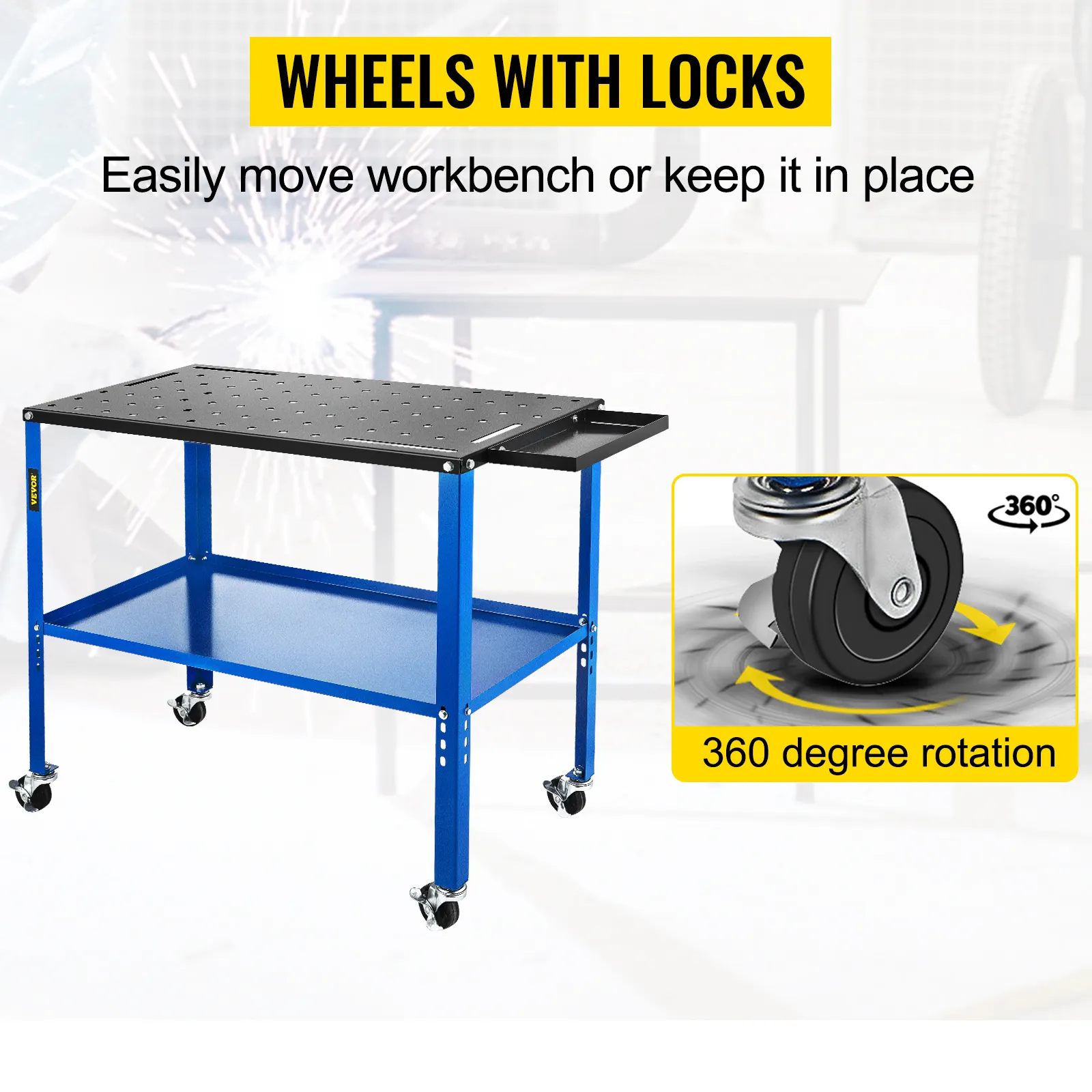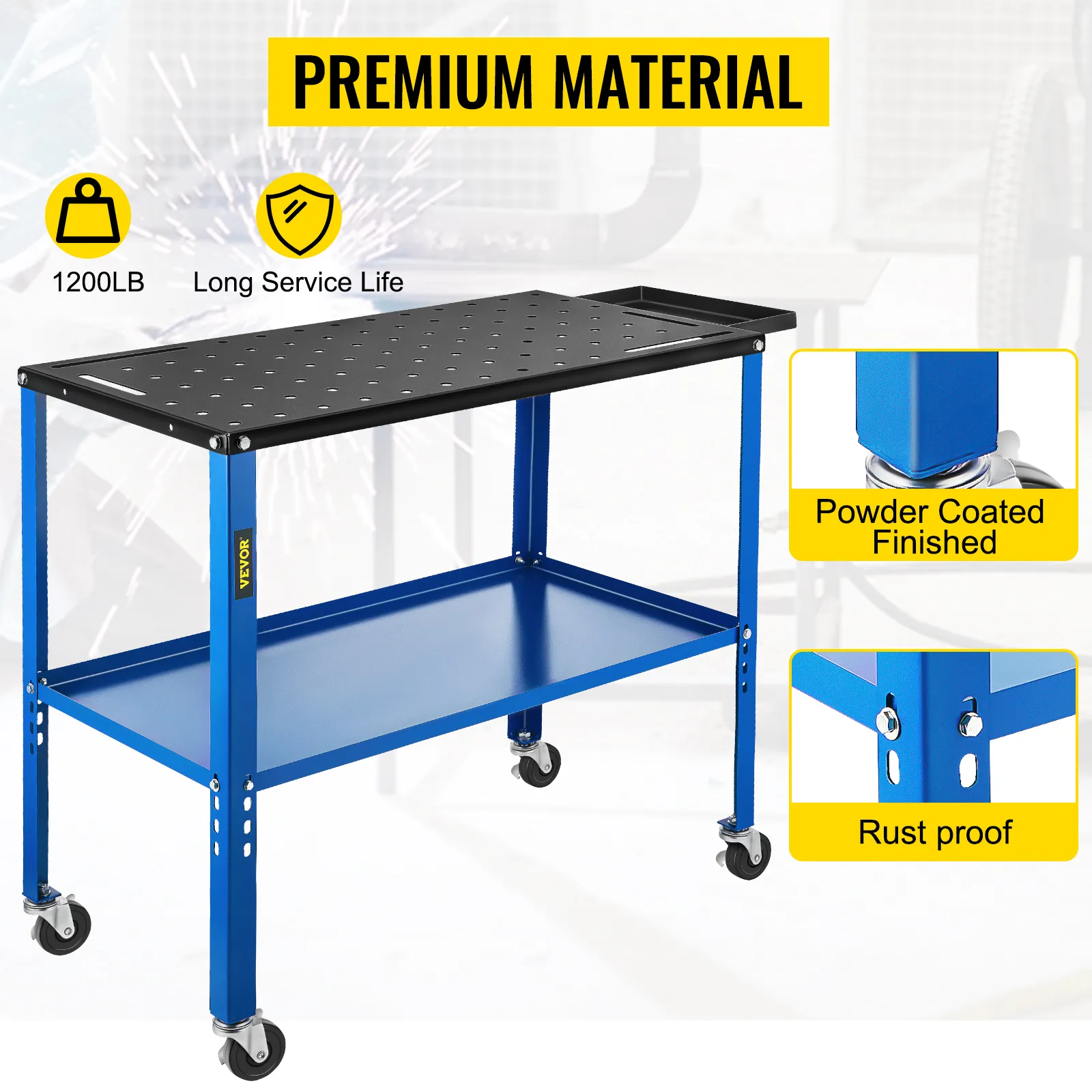 Our weld table has two layers, and the middle layer can up and down to provide you with more storage space.