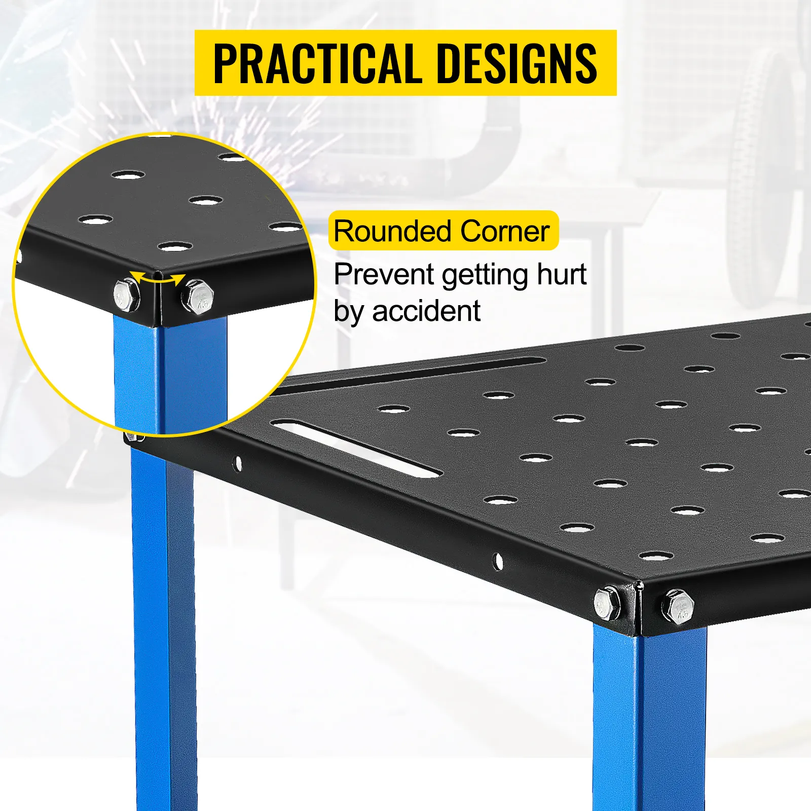 All corners of the steel welding table are rounded to avoid unnecessary bruises and scratches, ensuring security during use.