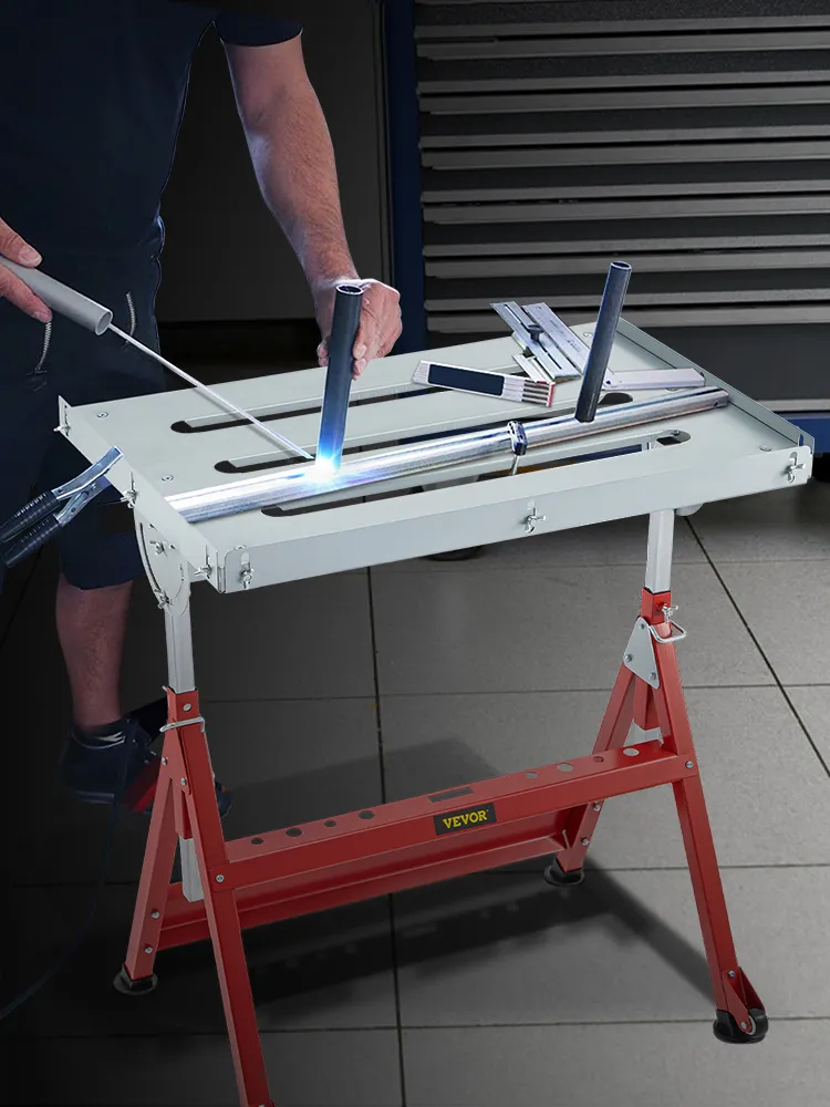 VEVOR's metal welding table with adjustable height and tiltable tabletop provides extra flexibility and versatility. Simultaneously, those thoughtful details of slots, guide rails, and the tool rack drastically added convenience for your weld. Even the most unruly and awkwardly shaped projects can find an appropriate spot on our welding table.