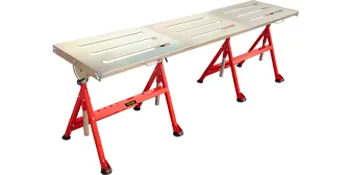 Our 90" x 20" spacious workbench with nine 1.1 in slots allows clips to be inserted at any point. At the edge of the table, you may find retractable vertical steel rails for use as a fence or for clamping.
