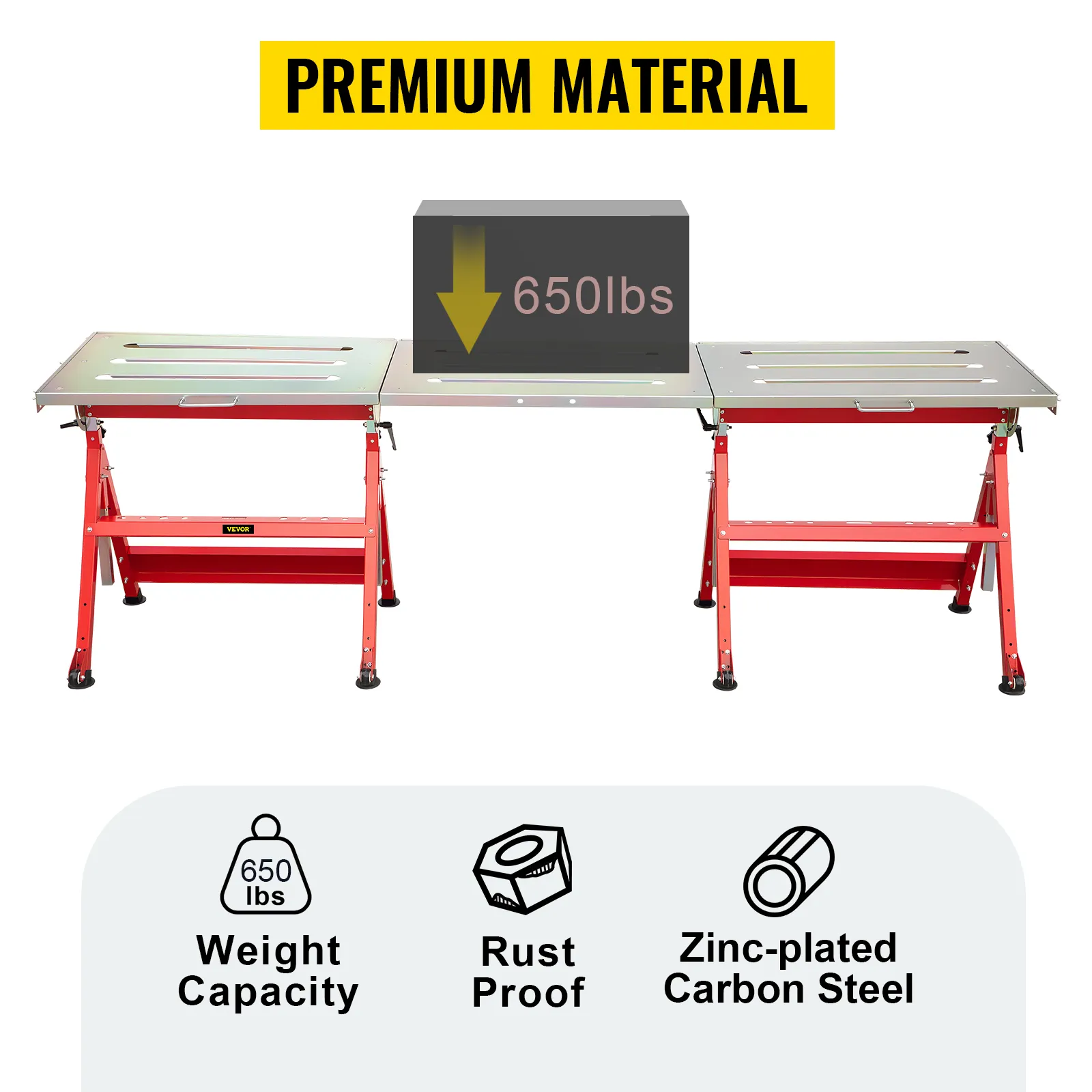 650 lbs Load Capacity: A carbon steel frame has forged this solid but lightweight welding table and has increased the load-bearing capacity to 650 lbs. Heavy-duty zinc plated surface makes it resistant to rust and ensures a long service time.