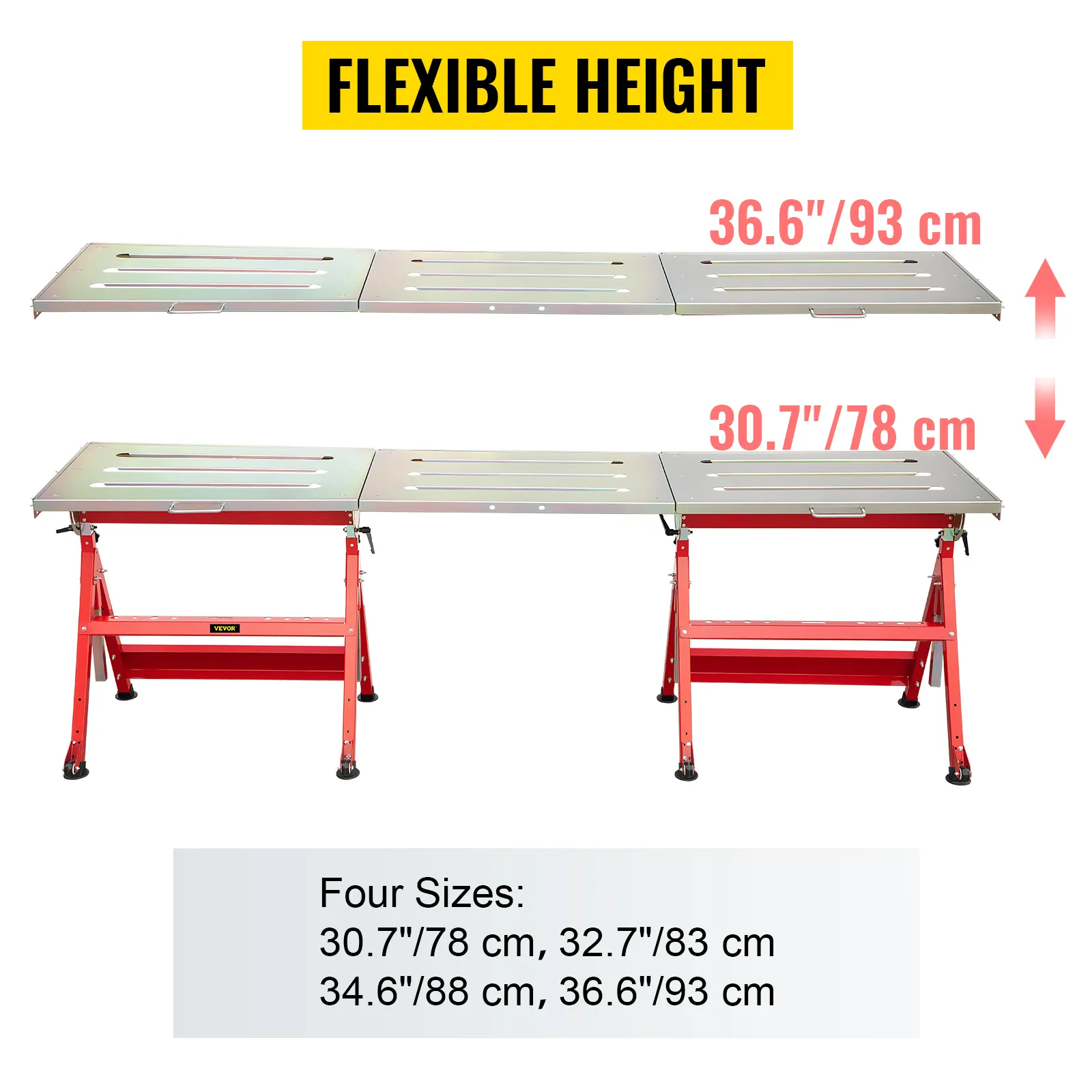 Adjustable Height: There are four height levels to choose from: 30.7"/78 cm, 32.7"/83 cm 34.6"/88 cm, and 36.6"/93 cm. The table height is perfect for sit down welding and meets the needs of people with different heights.