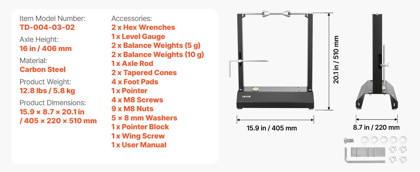 Easy to Use: This tire balancer stand lets you secure the wheel, spin it, and allow it to stop naturally—the lowest point reveals the heavy spot. Mark it, rotate it to the top, and apply weights. Once balanced, the wheel stays steady at any position