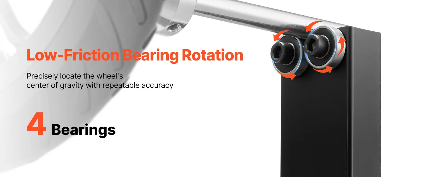 The precision bearings of this motorcycle bike wheel balancer ensure friction-free spinning. Wheels rotate effortlessly and stop at the heaviest point, ensuring accurate balance every time.