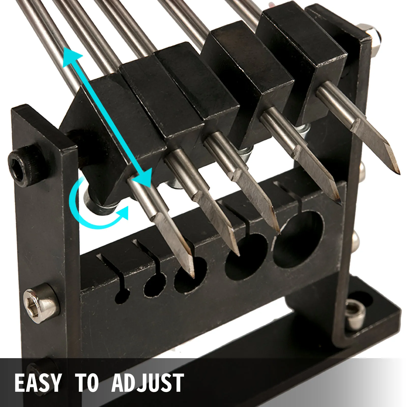 The blade rest of the copper wire stripper can rotate for easier blade adjustment, especially when the stripper is fixed on the workbench.