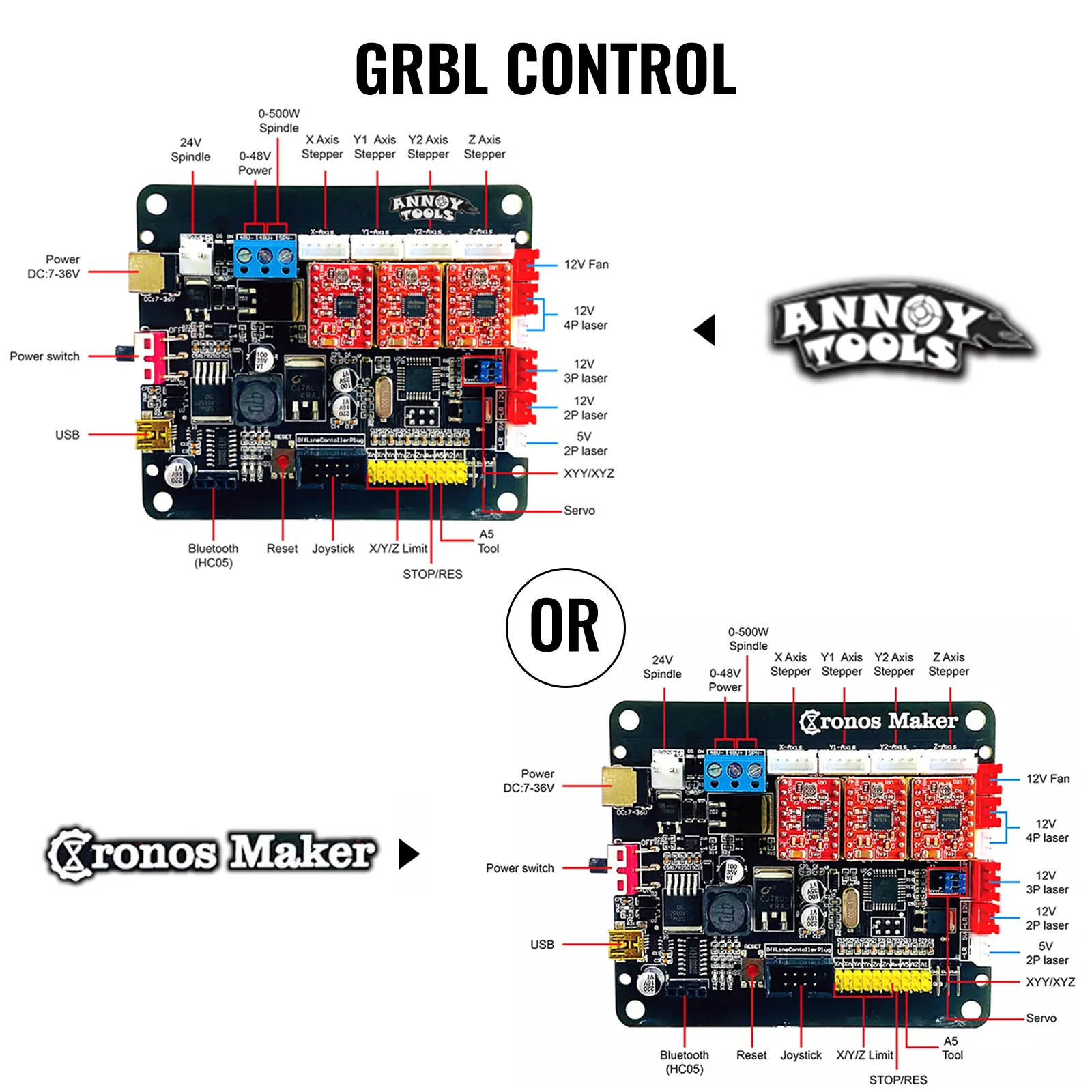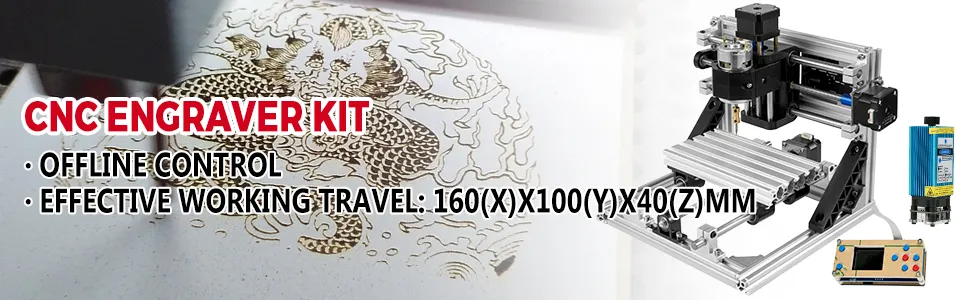 This CNC engraving machine with effective working travel of 6.3"(X)x3.9"(Y)x1.6"(Z), is made of aluminum profiles and black injection molding materials. It features USB port, GRBL control board, and an offline controller, able to be controlled easily with/without computers. An extra 500mw laser engraver is included for more powerful engraving. It can be used to engrave all types of plastics, soft aluminum, woods, PVCs, etc., which is an excellent affordable self-learning engraving tool!